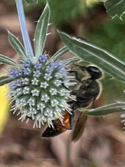 Abb. 18 + 19: Die Nahrung der erwachsenen Grabwespe(n) in Obervellach bildete u.a. Nektar von Mannstreu (Eryngium sp.) und weißblütigem Oregano (Origanum vulgare). Beide Fotos: © Martina PUCHER
